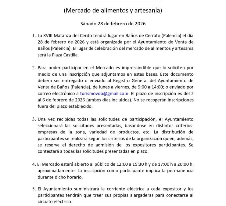 MERCADO DE ALIMENTOS Y ARTESANÍA XVIII MATANZA DEL CERDO. 28 DE FEBRERO. BAÑOS DE CERRATO